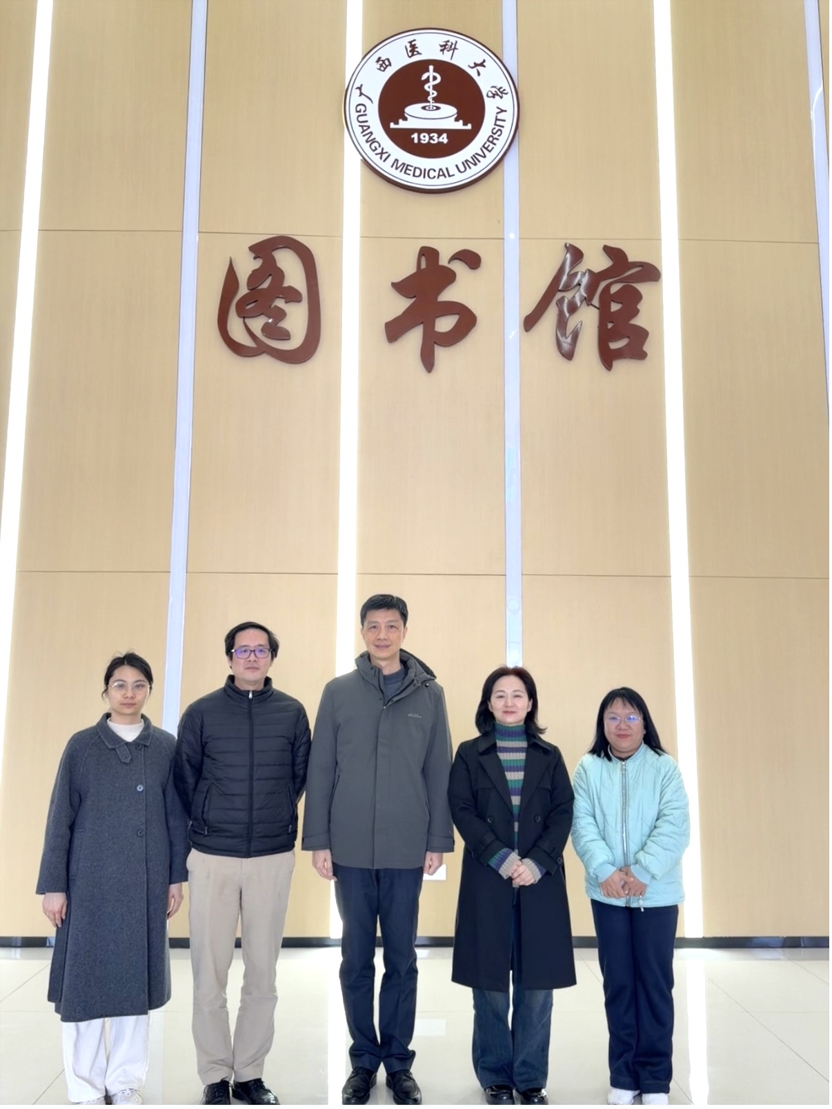 2026年1月6日上午,广西国际商务职业技术学院图书馆万海鸾馆长一行到我校武鸣校区图书馆开展交流活动。图书馆韦霄馆长与相关部门老师参加此次交流活动。
