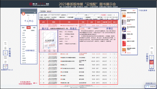 c.特设场馆区、学科区、中图区、云淘区、出版社区五大分类区,并标志重点书目。